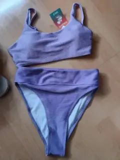 Traje de baño lila. Traje de baño 2 pzs bikiny tiro alto Top con almohadillas