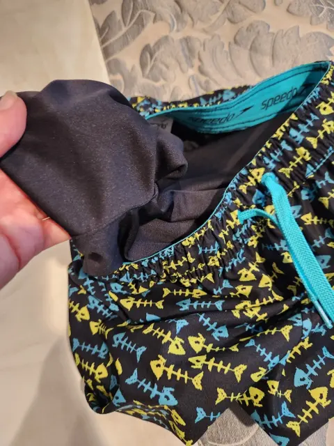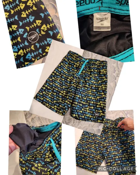 Hermoso traje de baño para niño, marca sueldo, tela ligera de secado rápido. Talla XG dr niño va bien a una talla 12. Está en excelentes condiciones