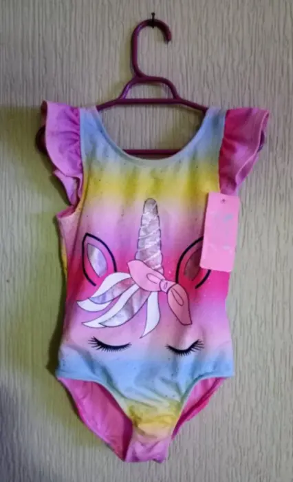 Traje de baño unicornio. Traje completo para niña talla 5 años no se utilizo tela Spandex