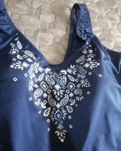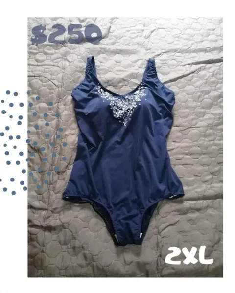 Traje de baño XXL. Traje de baño completo azul 2xl con decorado en el pecho.