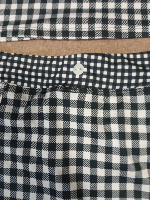 Avia conjunto deportivo a cuadros en blanco y negro para niña talla: 10-12.Materiales: Exterior 88% poliéster reciclado, 12% spandex. Interior : 88% poliéster y 12% spandex. Medidas: short-falda 32cm de largo, 64 cm de cintura y 72 cm de anchoCamiseta: 52 cm de largo, 70 cm de axila a axila, 62 cm de cintura. Usado puesto una vez.