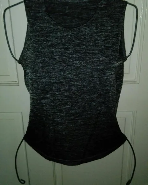 Blusa deportiva. Blusa para hacer deporte sin manga fresca para tiempo de verano. Color negro jaspeado.