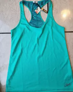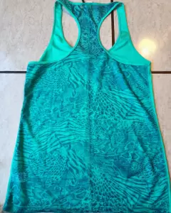 Blusa deportiva talla L, lisa de enfrente y con animal print transparente detras