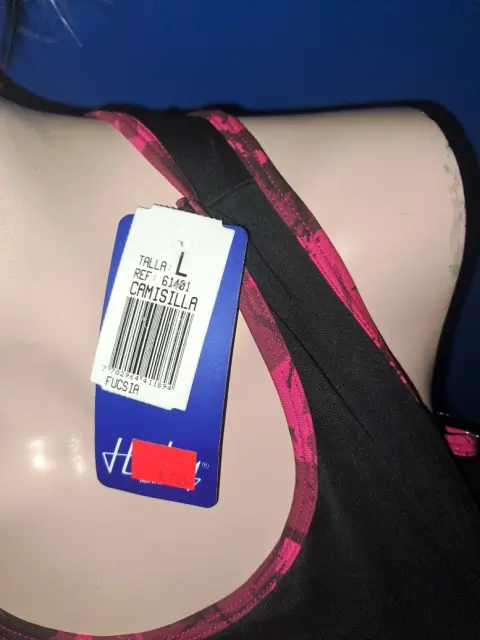 Blusa deportiva colombiana marca Haby color negro con detalles en rosa talla L