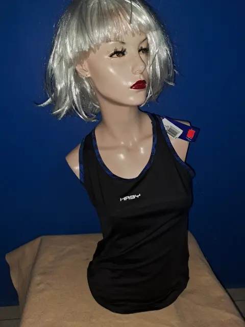 Blusa deportiva colombiana marca Haby color negro con detalles en azul talla L