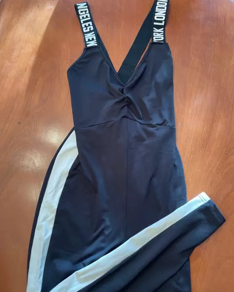 Bodysuit para gym de color negro con raya blanca nuevo