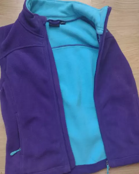 Chaleco en tela polar muy lindo , no me quedó y ya no lo pude cambiar . Nunca lo use más que para probarmelo . Tiene bolsillos con cierre y su interior es azul , marca Pacific Trail .
