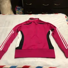 Chamarra deportiva ADIDAS. Padrisima chamarra marca ADIDAS, talla M , color rosa mexicano, solo tiene un pequeño detalle que se le cayo el cierre como se ve en la ultima foto, pero eso se puede arreglar fácilmente, la chamarra esta en perfectas condiciones no tiene ningun desgaste