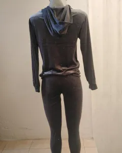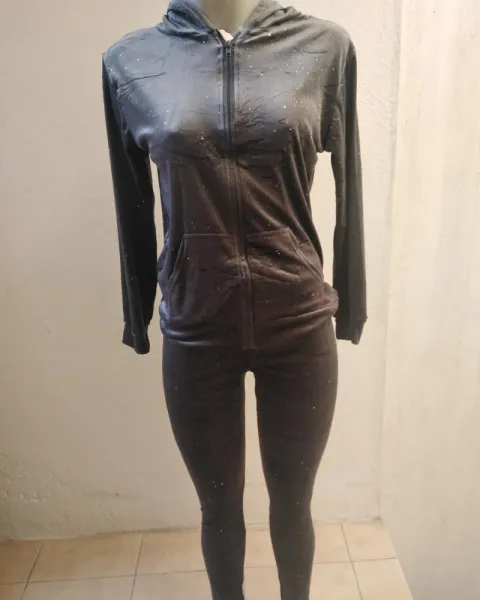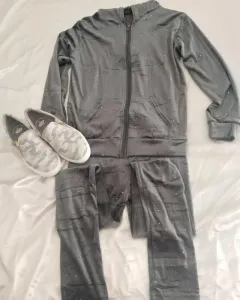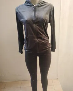 Conjunto deportivo de pants y sudadera gris aterciopelado, unitalla, tiene destellos, la Sudadera tiene cierre y gorro, nuevo sin detalle con etiqueta, cdmx