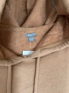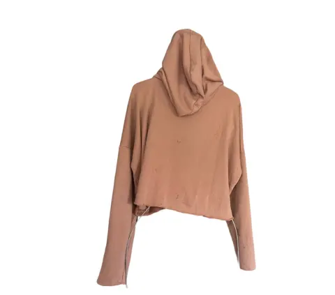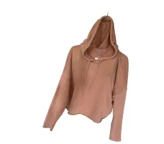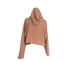 👚Crop topManga larga Hombros caídos CapuchaTela tipo toallaColor caqui Marca AerieTalla S