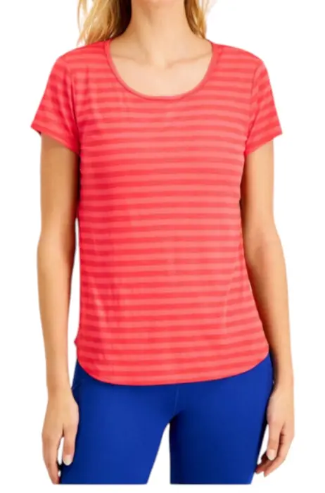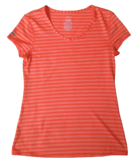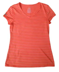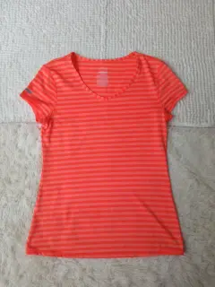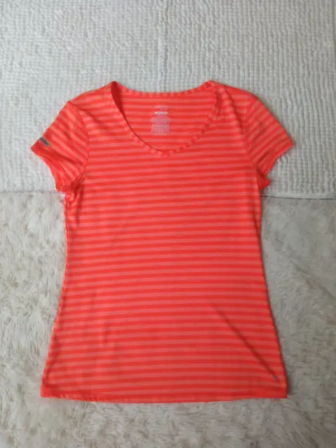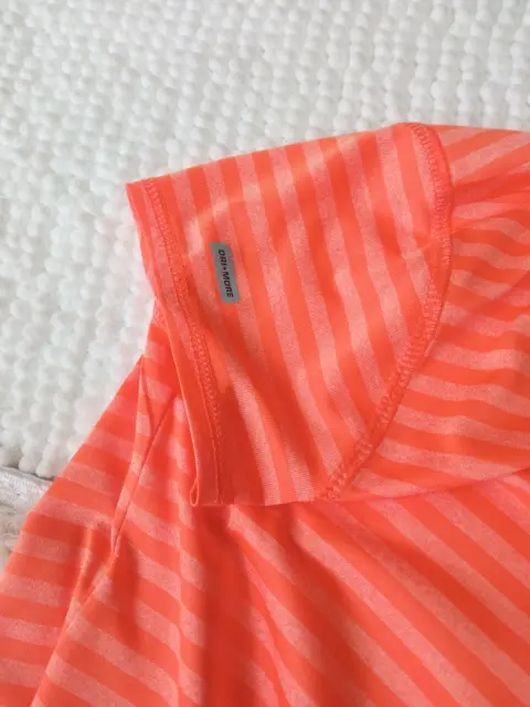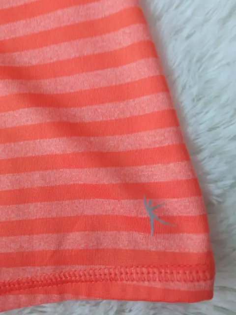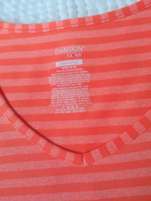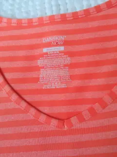 Camiseta deportiva semiajustada de Danskin a rayas color naranja y blanco.Talla Small. Usada en buen estado !! 100 poliésterMedidas: 62 cm largo, 64 cm de ancho espalda-pecho, 76 cm de ancho en cintura.