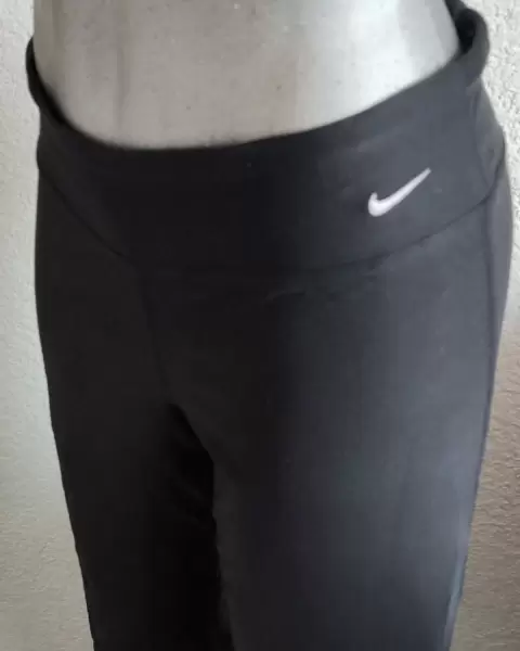 Leggins negro, liso, marca Nike, largo abajo de rodilla, con campana, licra, ajustado, no transparente