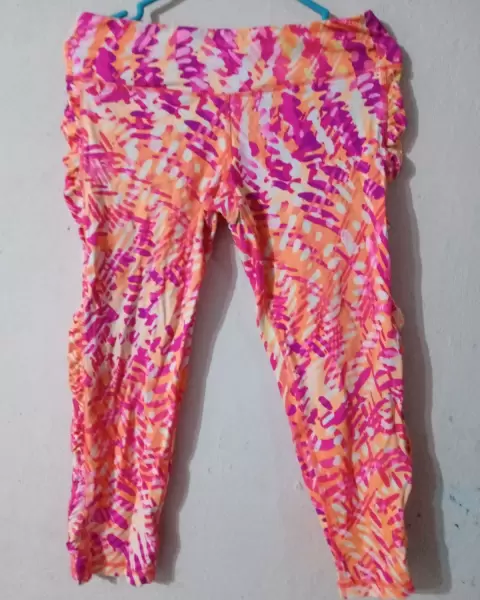 Leggings deportivos, marca Calvin Klein Performance, Talla M, con diseño en tonos naranja, amarillo rosa y blanco, es tres cuertos, la licra es super gruesa no se transparenta nada, es tiro alto, hace presio en el abdomen super bien, super comodos para hacer ejercicio, y a un super precio, esta xomo nuevo de verdad no tiebe ningun detalle, aprovecha puesto hace un cuerpo hermoso :)