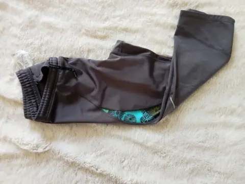 Leggins capri rebook, talla S, pero es más XS. Gris con vasitos en turquesa.