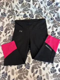 Leggings UnderArmour con detalles rosas. Leggings UnderArmour con detalles rosas talla S, no tienen ningún detalle, solo el logo de UA está un poco desgastado, llegan abajo de la rodilla y moldean muy bien el cuerpo.Cómodas para entrenar