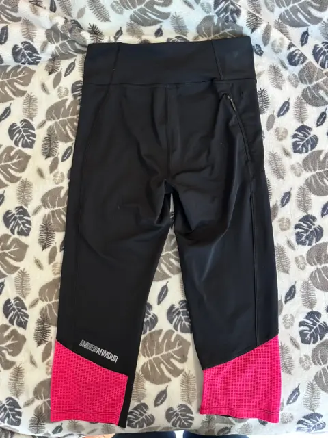Leggings UnderArmour con detalles rosas talla S, no tienen ningún detalle, solo el logo de UA está un poco desgastado, llegan abajo de la rodilla y moldean muy bien el cuerpo.Cómodas para entrenar