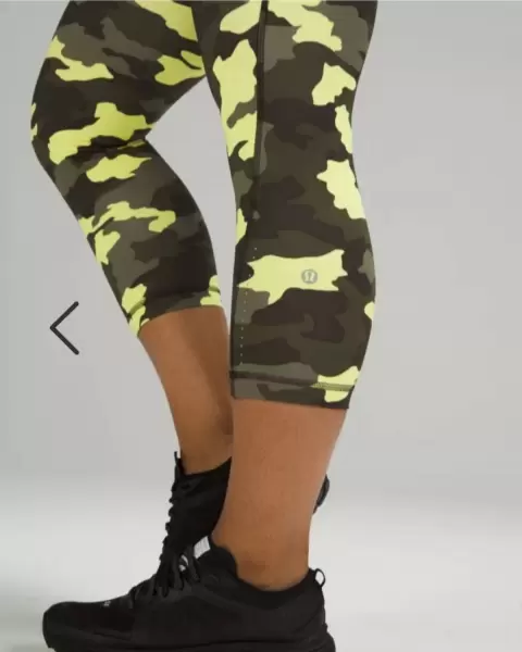 Leggins camuflajeado. Leggings lululemon talla 14 le queda a una talla L hasta 2xL con cinta de ajuste en cintura, bolsa atrás con cierre y bolsa en los costado 43 cm de cintura y 80 cm de largo.