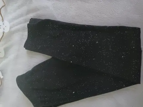 Leggins niña. Talla 7 años leggins licra de algodón color negro, es corto llega a la pantorrilla, está cubierto de glitter plata