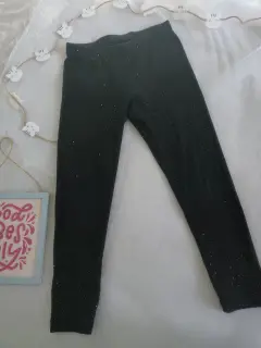 Talla 7 años leggins licra de algodón color negro, es corto llega a la pantorrilla, está cubierto de glitter plata
