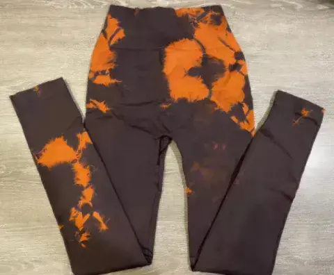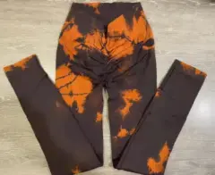 Leggins Tie Dye corte V. Leggins deportivo push upProducto nuevoUnitalla: Abarca de una talla 3 hasta 9 máximoModelo Tie Dye (mismo modelo de la imagen)Corte V en parte posterior Pretina gruesa Color: cafe con naranja Puente en la entrepierna