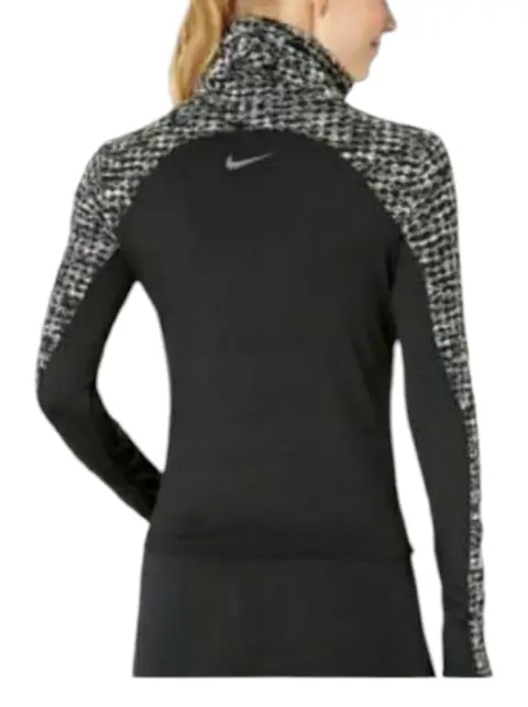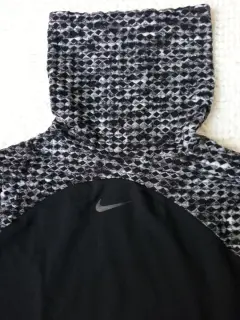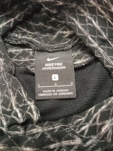 Nike Hyperwarmcamiseta de entrenamiento de manga larga, color negro con gris y blanco. Talla Large. La tela Nike Pro HyperWarm aísla el calor corporal para mantenerte abrigado El cuello exagerado proporciona cobertura adicional Paneles de malla transpirable en la espalda y las axilas para un flujo de aire óptimo Cobertura de manga larga con puños con orificios para los pulgares Tela: 87% poliéster, 13% elastano.Medidas: 58 cm de largo, 74 cm espalda-pecho, 94 cm ancho en cintura, 62 cm de largo en mangas y20 cm largo de cuelloSe usó una vez excelente condición sin detalles !!