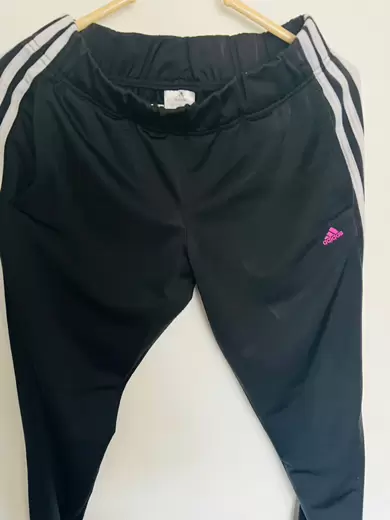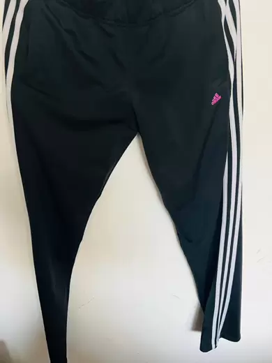 Pans negro Adidas, talla S, rallas blancas laterales, buen estado, tiene bolsas.