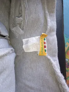 Pans pesquero. Pans pesquero color gris, con lineas y un número al frente, con bolsas al frente