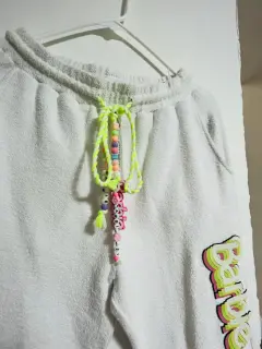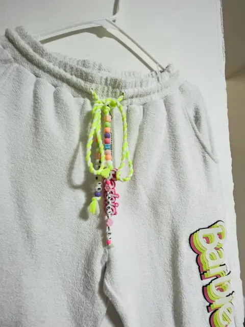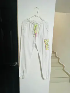 Pants blanco Barbie. Precioso pants talla S queda a M sin problema. Con detalles coloridos y vistosos. Nuevo súper cómodo y en tendencia.