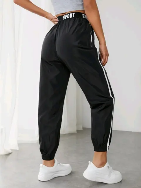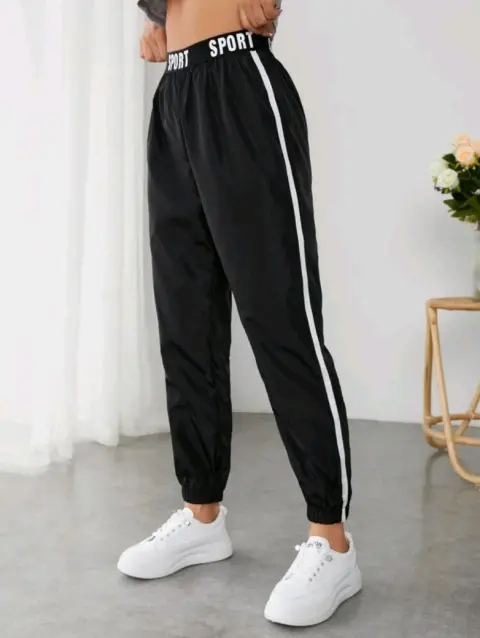 Pants negro de talle alto, tela ligera y con resorte en contura y talones.