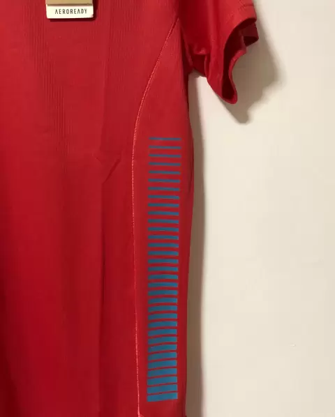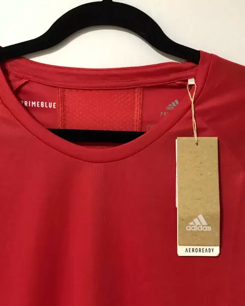Playera deportiva/ adidas/ talla M/ corte clasico que se ajusta al cuerpo/ cuello redondo/ manga corta/ malla 100% de poliéster reciclado/ tecnologia de ventilación climacool/ 360 grados de reflectividad
