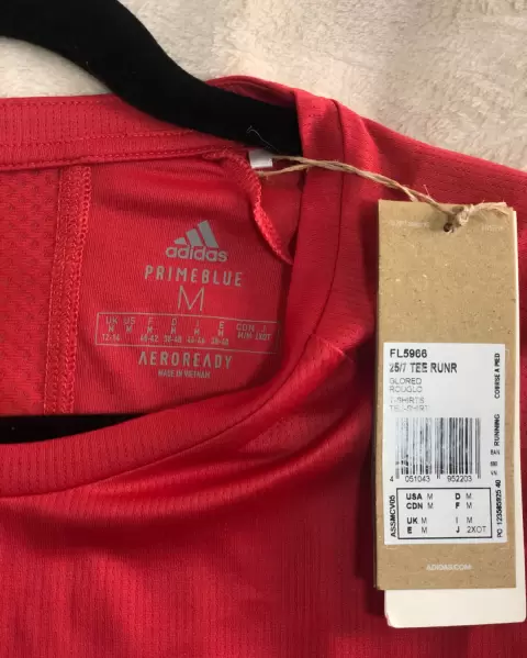 Playera Adidas Nueva. Playera Deportiva 25/7 / Marca Adidas/ Nueva con etiqueta/ cuello redondo mangas cortas/ malla 100% poliéster reciclado/ color glory red
