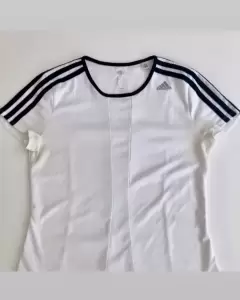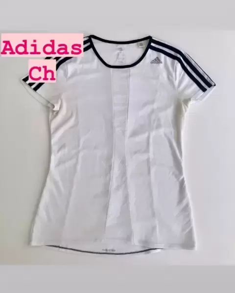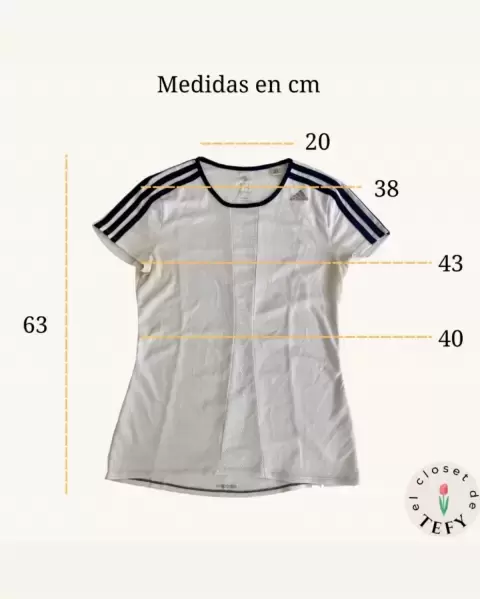 Playera blanca adidas. * Adidas talla S* Se ve amarillento en la zona de las axilas y dorso (se ve en las fotos)* Medidas del producto: * Largo: 63 cm* Largo hombros: 38 cm* Largo pecho: 43 cm * Largo cintura: 40