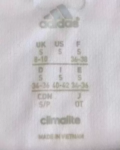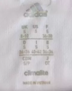 * Adidas talla S* Se ve amarillento en la zona de las axilas y dorso (se ve en las fotos)* Medidas del producto: * Largo: 63 cm* Largo hombros: 38 cm* Largo pecho: 43 cm * Largo cintura: 40