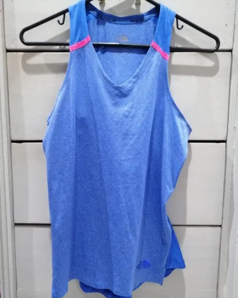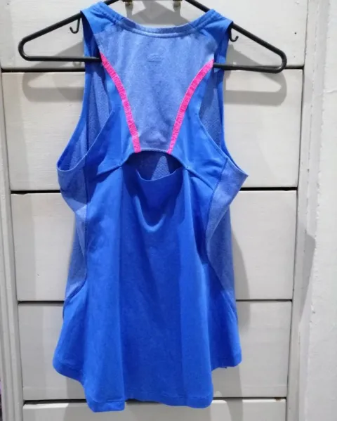 Playera deportiva azul y rosa