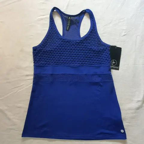 Playera deportiva con malla en top. Playera con malla en top, azul rey, de lycra suave, ideal para gym o yoga.Talla LMarca: 90 Degree by Reflex