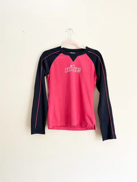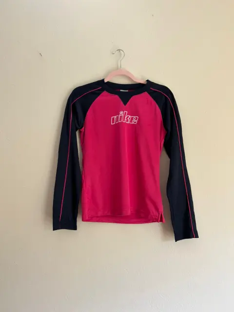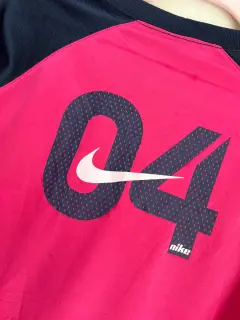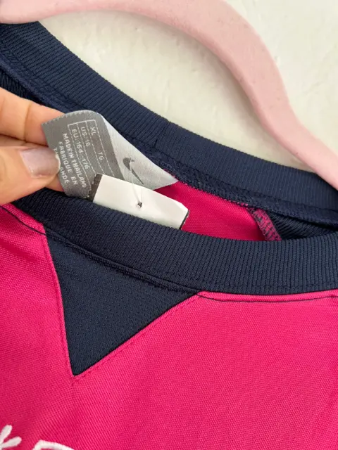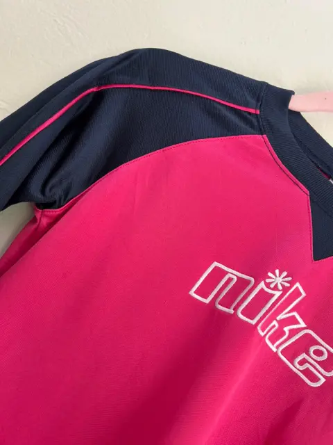 Playera deportiva Nike color rosa con azul marino Talla L de joven, ideal para XS o S de mujer Tiene unas manchitas que se le quitarán al lavarla