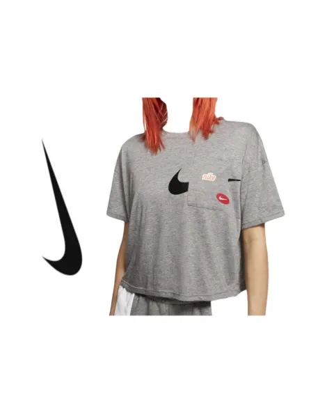 Playera Nike. Playera Nike preciosa con estampado y bolsillo. Es holgada pero llega poco bajo del ombligo, muy linda Más barata que en tienda