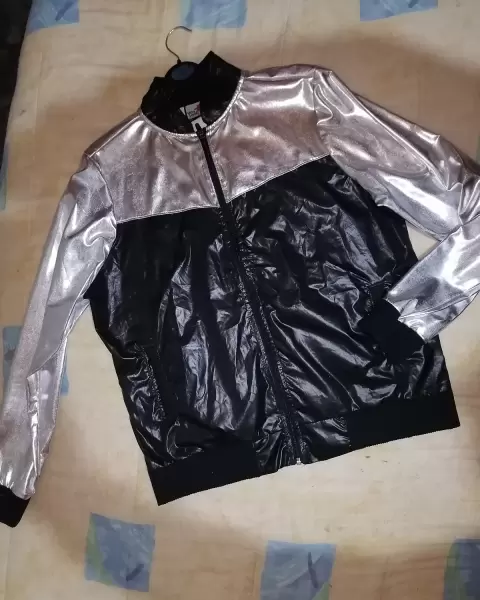Hermoso rompevientos negro plata super comodo, ideak para ir al gym