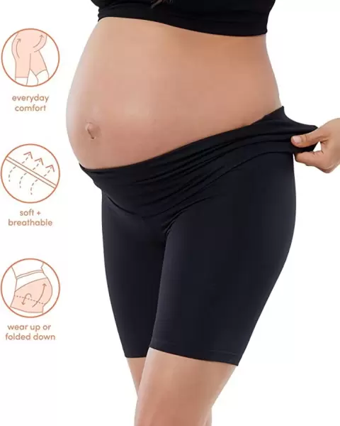 Shorts de ciclismo pre mamá. Shorts de ciclismo premamá activos - Isabel MaternityAjuste y estiloLos shorts ciclistas negros son una adición versátil a tu ropa premamáEl panel cruzado brinda soporte adicional para un uso cómodoDiseño de tiro medio y sin cordones para un uso fácilLa tela suave con spandex agregado ofrece un ajuste flexibleTalla XS