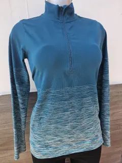 Sudadera Azul deportiva con medio cierre, decorado en líneas en la parte inferior y en la manga orificio para dedo pulgar