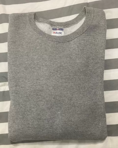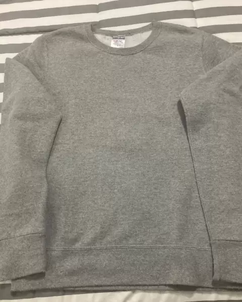 Sudadera clásica , 50% algodón, T/Ch, de axila a axila 50 cm, largo 60 cm, escote redondo, color gris, sin detalles.