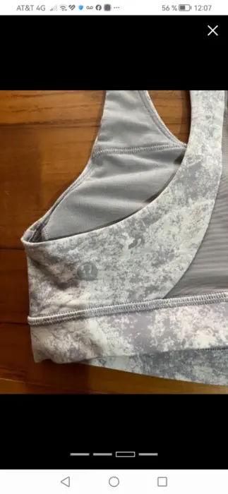 Sujetador Lululemon. Sujetador vigorizante, Serigrafía plateada blanca alpina de mármol lavado Talla 4 Usado en excelente condiciones