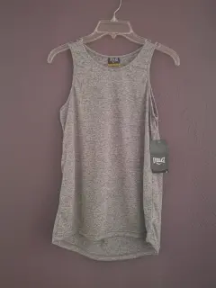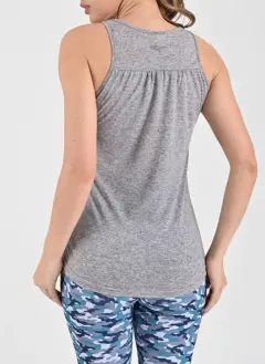 Top tank espalda atlética y cuello redondo, detalle fruncido en la espalda. Tela suave ajustable