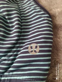Top deportivo lululemon 6. Bonito top deportivo color azul de rayas, no tiene las almohadillas, poco desgaste en broches, talla 6/ S , en buen estado.