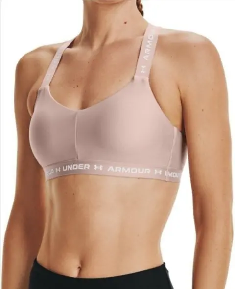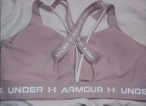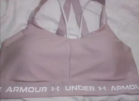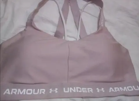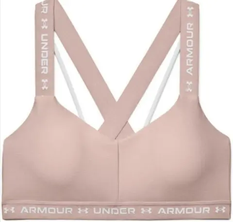 Top deportivo Under Amour color rosa claro, tiene almohadillas internas que se pueden retirar si así lo deseas. Mide de elástico 40cm. llega a estirar 53cm. Material 88% poliéster, 12% elastano.