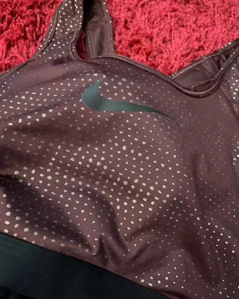 Top Sport Nike. Top deportivo NIKE con detalles de destellos dorados, en tono vino tinto y elástico, sin defectos 🤎