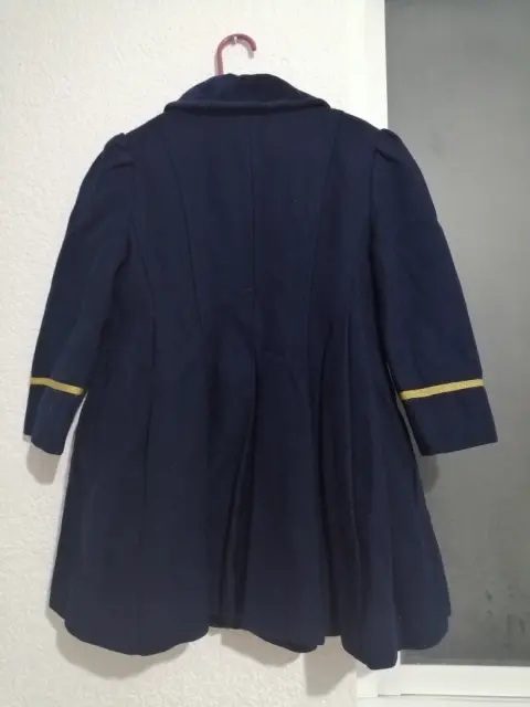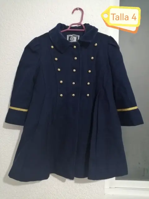 Abrigo. Hermoso abrigo para niña color azul con botones color oro y cuello alto
