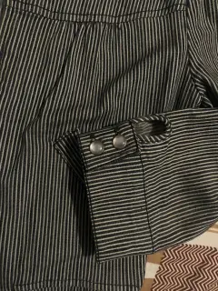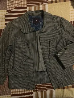 Blazer. En buen estado Blazer negro con rayas gris manga 3/4 Blazer modesto (tipo chamarra de mezclilla)