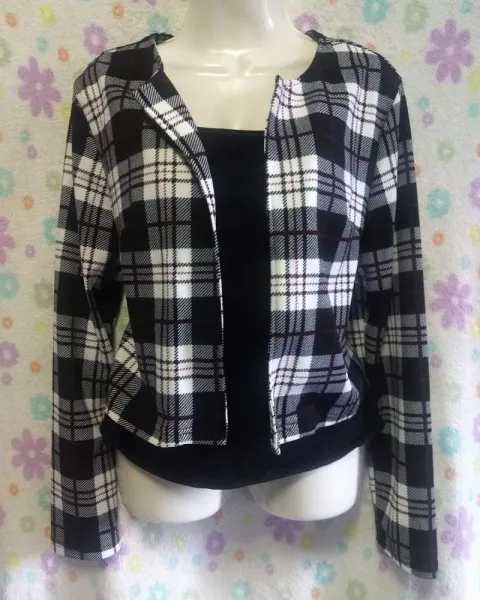 Blazer a cuadros blancos y negro. Blazer ligero corto sin forro, fresco, combinable con todo estilo sin detalle, NUEVO.
