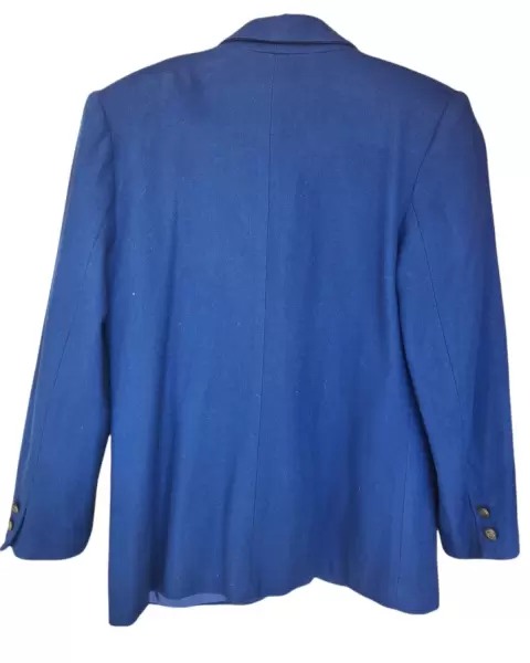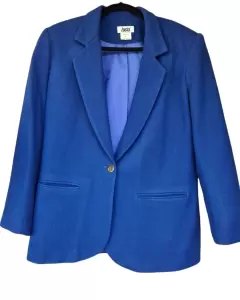 Saco azul rey de lana, excelente calidad, 1 boton al frente y 2 bolsillos parte inferior.Los botones son super bonitosMedidas:72 largo51 axila a axila58 manga44 hombro